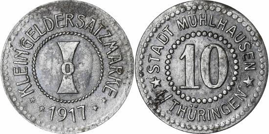 | | Germany, Stadt Mühlhausen in Thüringen, 10 Pfennig, 1917, , Iron | | | FEATURES |