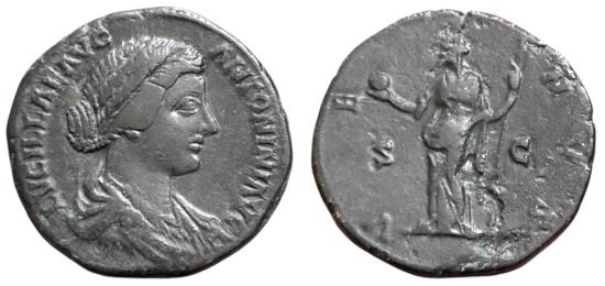 Obv: LVCILLAE AVG - ANTONINI AVG F Bust draped right. Rx: VE NVS S - C Venus standing left holding apple and scepter.
