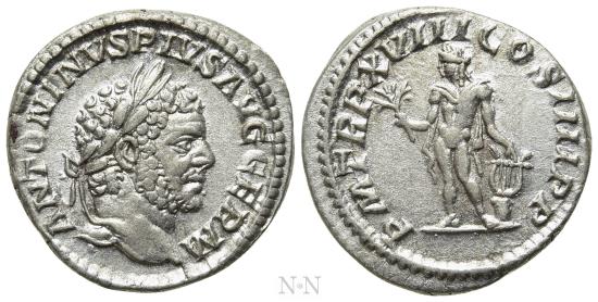 Obv: ANTONINVS PIVS AVG GERM.Laureate head right.Rev: P M TR P XVIII COS IIII P P.Apollo standing left, holding branch and resting hand upon lyre set upon base.