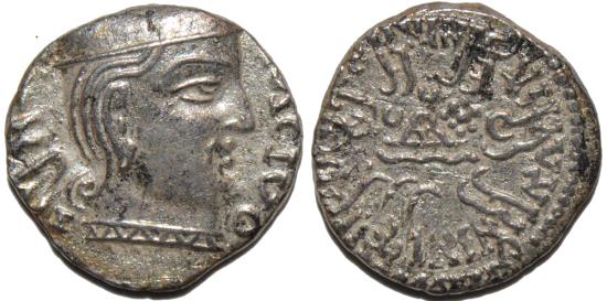 Head of king right, blundered Greek legend around, date behind head |