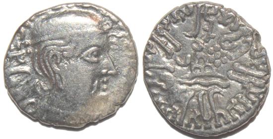 | INDIA, WESTERN KSHATRAPAS: Rudrasena I (c.199-222 CE) Silver drachm, as Mahakshatrapa, Legend A, year S. 142. CHOICE! |