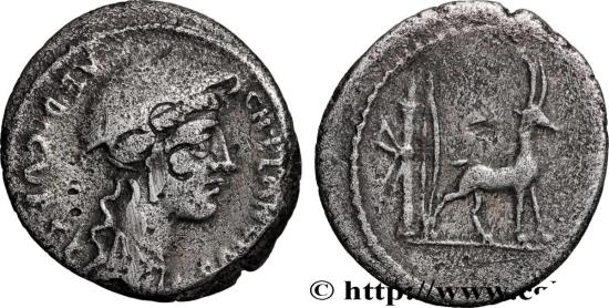 CN. PLANCIVS/ AED. CVR. S. C Tête de Diane Planciana à droite, coiffée du pétase avec boucle doreille et collier