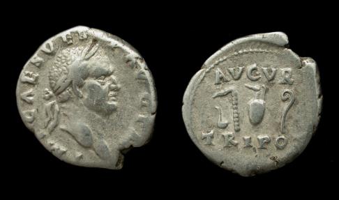 Silver plated; 18mm/3.4gm Rome Mint, Struck ca. 74 AD.