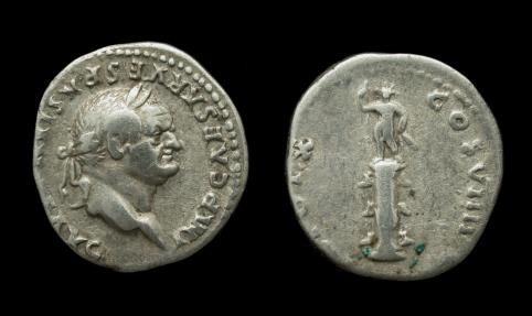 Vespasian, Denarius, Rostral Column reverse, Look!