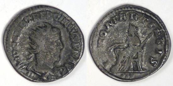 Obv: Radiate, draped and cuirassed bust of Trebonianus Gallus right with the legend IMP C C VIB TREB GALLVS P P AVG and IIV below