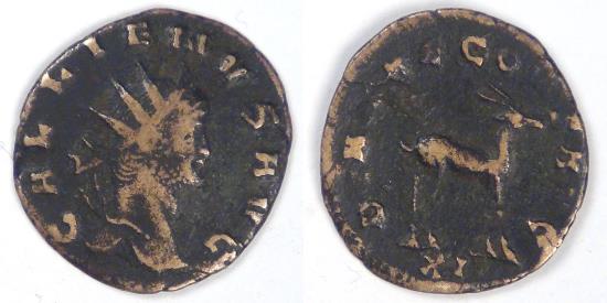 Obv: Radiate bust of Gallienus right with the legend GALLIENVS AVG