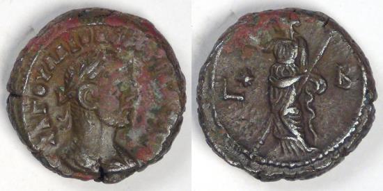 Obv: Laureate, draped and cuirassed bust right of Diocletian with the legend AKΓ OYA ΔIOKΛHTIANOC CEB