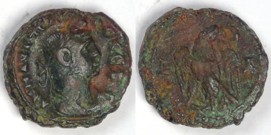 Rev: Eagle standing left, head right, wreath in beak, with L - Δ (regnal year 4) across fields