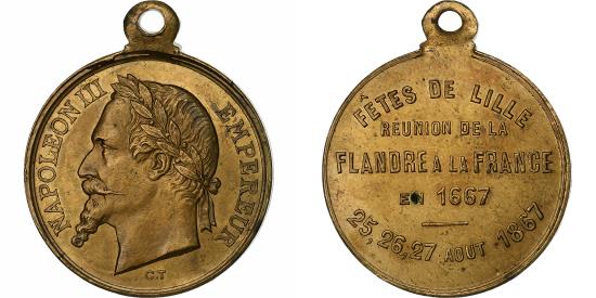| | France, Medal, Napoléon III, Fêtes de Lille, 1867, Brass, | | | FEATURES |
