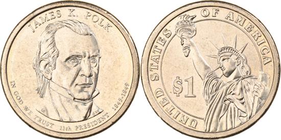 | | United States, Dollar, 2009, U.S. Mint, Copper-Zinc-Manganese-Nickel Clad | | | Date and mint mark on edge | | FEATURES |