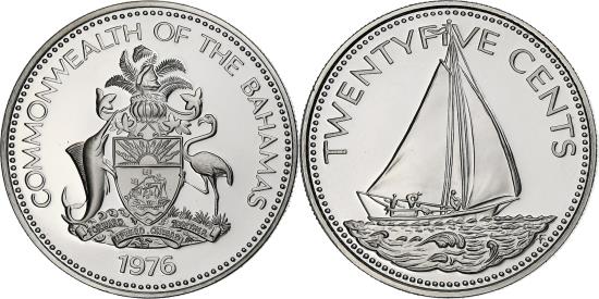 | | Bahamas, 25 Cents, 1976, Franklin Mint, Proof, Nickel, , KM:63.1 | | | FEATURES |
