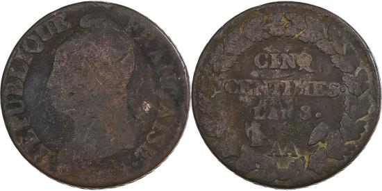 | | France, 5 Centimes, Dupré, AN 8, Metz, Copper, | | | FEATURES |