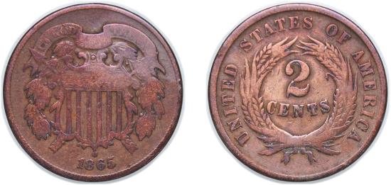 United States Federal republic 1865 2 Cents "Union Shield" Bronze Philadelphia Mint (13640000) 6.02g VF KM 94