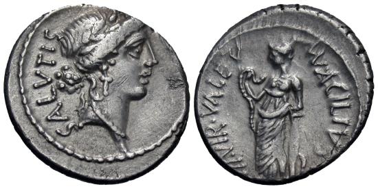 Roman Imperatorial. Man. Acilius Glabrio. AR Denarius. Salus.