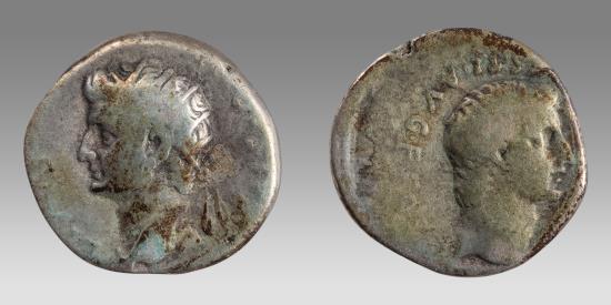 | CAPPADOCIA, Caesarea-Eusebia. Germanicus, with Divus Augustus. Caesar, 15 BC-AD 19. AR Drachm |