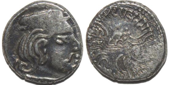 The so-called "Bombay fabric" coins of Damasena are relatively recent discoveries from hoards found in Bombay and Ahmedabad. The coins are of lighter weight and do not carry dates or the blundered Greek legends on the obverse, while the reverse Brahmi legends are frequently blundered.