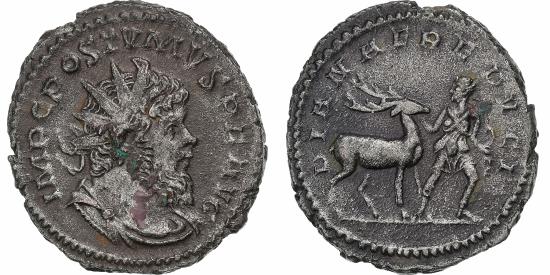 | | Postumus, Antoninianus, 266-267, Trier, Billon, , RIC:300 | | | Bust of Postumus, radiate, draped, cuirassed, right, Diana, draped, walking right, holding bow in right hand and leading stag with left hand, Date and mint : see RIC V.4, The Gallic Empire, n°288. Beautiful example, an extremely rare type, sought-after by collectors of Gallic Empire coins., IMP C POSTVMVS P F AVG, DIANAE REDVCI | | FEATURES |