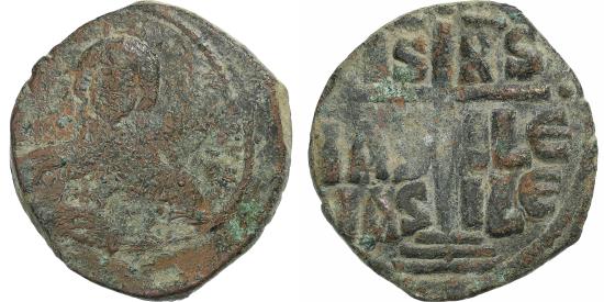 | | Time of Romanus III, Follis, 1028-1034, Constantinople, Bronze, | | | Facing bust of Christ, nimbate, holding the Book of the Gospels., Cross on steps, cantonned by a caption., Anonymous follis attributed to Romanus III. | | FEATURES |