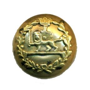 IRAN, PERSIA: Qajar era (before 1925) Bronze military Button with Metal Badge (22 mm in dia.), Lion and the Sun with Qajar crown at the top, Made by German Company " FEIN ", Superb condition! RARE!