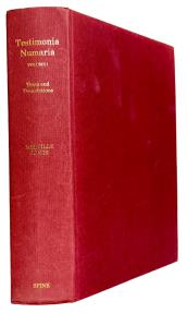 Testimonia Numaria, Greek and Latin Texts Concerning Ancient Greek Coinage. Volume 1. Text and Translations by John Melville Jones, Spink London, 1993, 544 pages, red cloth. Little used and Fine. The original edition printed on thicker & better quality paper than the 2009 reprint.