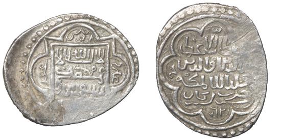 Eretnid, ‘Ali Beg (‘Ala al-Din, b. Muhammad), 767-782 / 1366-1380. AR akçe. Dated 762 AH. 1.60g – 20.5 mm. Arzinjan mint. Octofoil / plain square within lobated square. A23424.2. aXF