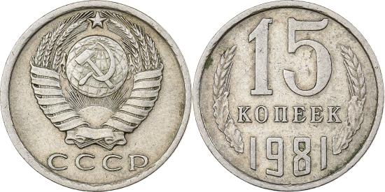 | | Russia, 15 Kopeks, 1981, Saint Petersburg, Copper-Nickel-Zinc, , KM:131 | | | National arms, Value and date flanked by sprigs | | FEATURES |