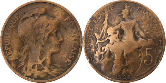 | | France, 5 Centimes, Dupuis, 1908, Paris, Bronze, , Le Franc:F.118 | | | Dupuis, Liberty head right, Republic protecting her child, denomination at right, date below, Without mint mark. | | FEATURES |