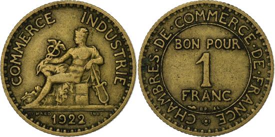 | | France, Franc, Chambre de commerce, 1922, Paris, Aluminum-Bronze, | | | Chambre de commerce, Value, Mercury seated left, Without mint mark. Chamber of Commerce., CHAMBRES <Bullet> DE <Bullet> COMMERCE <Bullet> DE <Bullet> FRANCE | | FEATURES |