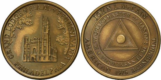 | | United States, Medal, John L. McCain, Grand Master of Masons, Pennsylvania | | | FEATURES |
