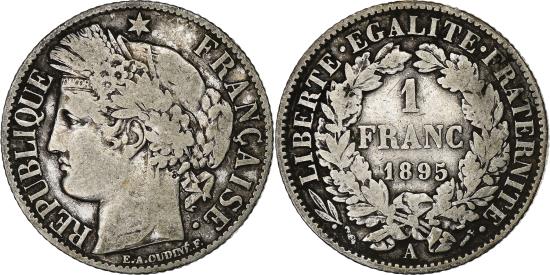 | | France, Franc, Cérès, 1895, Paris, Silver, , Gadoury:465a, KM:822.1 | | | Cérès, Laureate head left, Denomination within wreath | | FEATURES |
