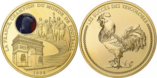 | | France, Medal, La France, Champion du Monde de Football, 1998, Copper Gilt | | | FEATURES |
