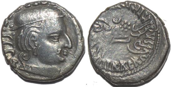 Head of king right, blundered Greek legend around, date behind head |