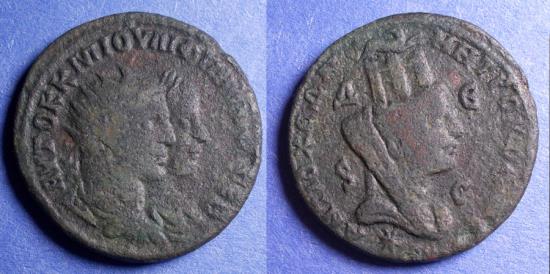 Conjoined busts of Philip - Radiate - and Philip II Laureate, right. “AYTOK K M IOYΛI ΦIΛIΠΠOI CEB”