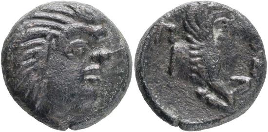 Ancient Greek coin from Pantikapaion, Cimmerian Bosporos - Satyr and Pegasus 310-304 BC