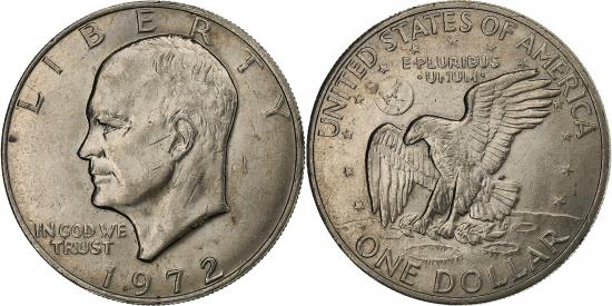 | | United States, Dollar, Eisenhower, 1972, U.S. Mint, Copper-Nickel Clad Copper | | | Eisenhower Dollar | | FEATURES |