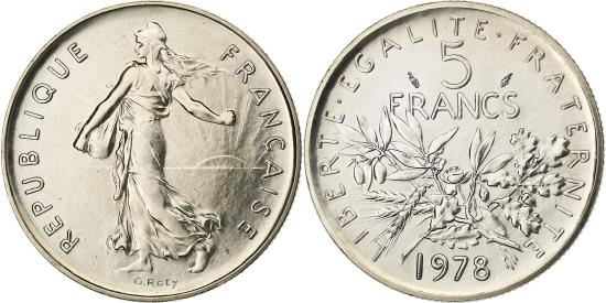 | France, 5 Francs, Semeuse, 1978, Monnaie de Paris, série FDC, Copper-nickel |