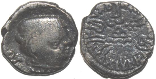 | INDIA, WESTERN KSHATRAPAS: Visvasena (292-304 CE) Silver drachm, as Kshatrapa, year S. 220 |