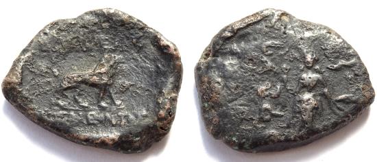 Obverse: Lioness standing right with Greek legends above and below