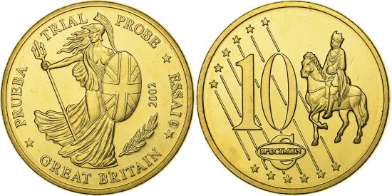 | Great Britain, Medal, 10 C, Essai-Trial, 2002, Copper-Nickel Gilt, |