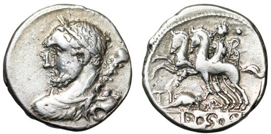 Ti Quinctius AR Denarius "Hercules, Club Portrait / Desultor, Horses"