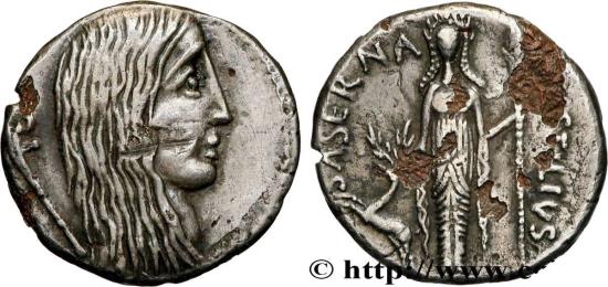 L. HOSTILIVS/ SASERNA Diane dEphèse debout de face, tenant de la main droite un cerf et de la gauche, une javeline verticale