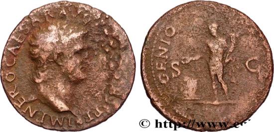 IMP NERO CAESAR AVG P MAX TR P P P Tête nue de Néron à droite (O°), globe à la pointe du cou