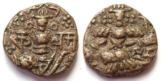 Obverse: Goddess Lakshmi seated facing, flanked by Nagari legend