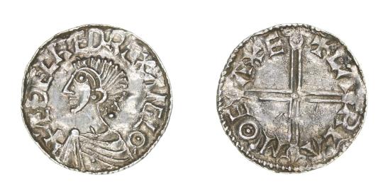 Aethelred II The Unready AD 978-1016 Silver Penny Long Cross type Bare headed bust left/Voided long cross Exeter / Carla S1151, 19mm, 1.40g This coin comes with a previous collection label Æthelred II ‘The Unready’ – 978-1013/1014-1016: The eldest son of Eadgar, Æthelred became king at the mere age of 12 following the brutal murder of his half-brother Edward. Young and easy to manipulate, he came to depend on his councillors for their prudent advice – an aspect in which they badly let him down. Though his reign is noted for its economic reforms and a high standard for the English coinage, it was marred by Scandinavian raids, periods of acute social instability and famine. Initially adopting a policy of paying the invaders to go away, Æthelred abruptly U-turned in 1002 and massacred many ethnic Danes resident in England. This policy backfired spectacularly, actually causing more Scandinavians to take up arms against him. Displaced from the throne in 1013 by Swein Forkbeard, he briefly returned to rule for a second time in 1014 after the latter’s untimely death – only to die himself shortly afterwards. |