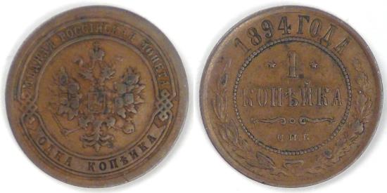 RUSSIA - Empire, Alexander III, 1894 СПБ, Kopek, Very Fine