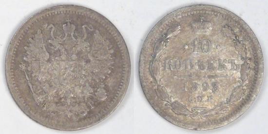 RUSSIA - Empire, Alexander III, 1893 СПБ АГ, 10 Kopeks, Extra Fine