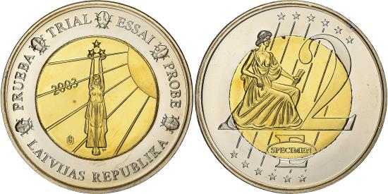| Latvia, Medal, 2 E, Essai-Trial, 2003, Bi-Metallic, |