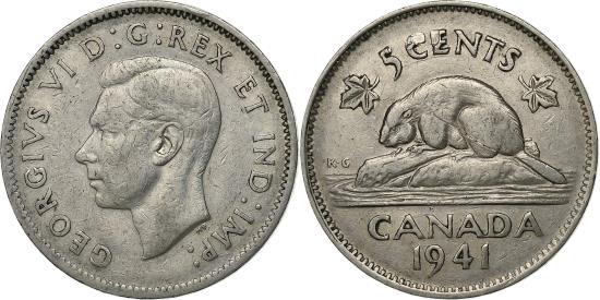 | | Canada, George VI, 5 Cents, 1941, Ottawa, Nickel, | | | FEATURES |