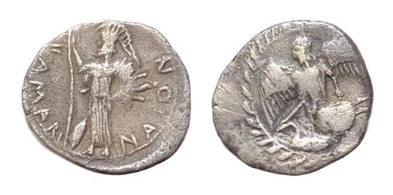 | Sicily, Kamarina AR Litra.12mm 0,5g. Circa 461-435 BC. Nike flying to right; below, swan to right; all within wreath / Athena standing to left, holding spear; shield to right, |