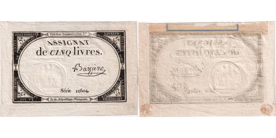 | France, 5 Livres, 10 brumaire de l'an 2 - (31 octobre 1793), 10604, AU(55-58) |